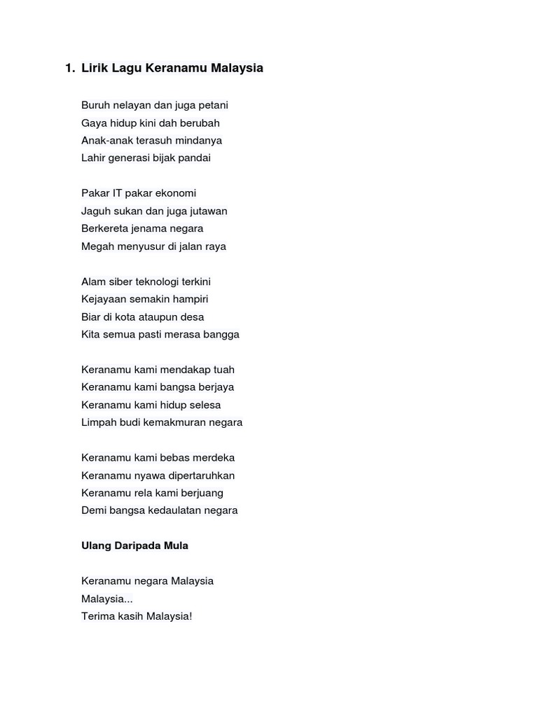 Lirik Lagu Keranamu Malaysia Lagu Patriotik. 35 Full PDFs related to this paper. Keunikan Malaysia yang mengamalkan sistem pemerintahan demokrasi berparlimen dan raja berpelembagaan dan.