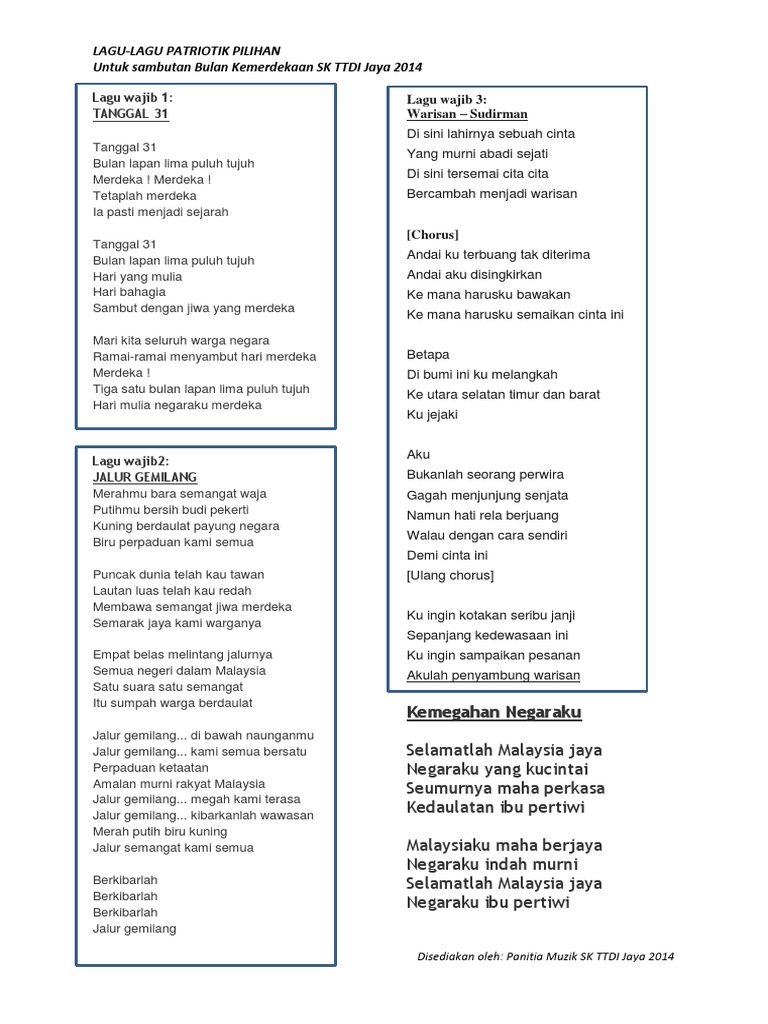 Lirik Lagu Patriotik Malaysia Pdf